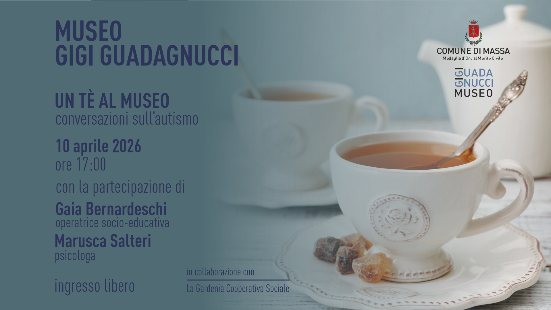 Venerdì 10 aprile 2026 alle ore 17:00 vi aspettiamo in museo per Un tè al museo, conversazioni sull’autismo. Giunto al quarto appuntamento, si tratta della seconda edizione di un ciclo di incontri dedicati al tema dell’autismo, realizzati nell’ambito di Andrò al museo!, progetto di accessibilità promosso dal Comune di Massa e prodotto dal Museo Gigi Guadagnucci. Le conversazioni sono generalmente rivolte a famiglie con figli nello spettro autistico e a operatori del settore. In questo incontro, invece, sarà dato spazio al dialogo con gli insegnanti che lavorano, in ogni ordine e grado scolastico, con studenti nello spettro autistico.